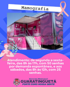 A Prefeitura de Guaratinguetá, por meio da Secretaria da Mulher, recebe a partir de segunda-feira (10) a Carreta da Mamografia e a Carreta do Empreendedorismo.