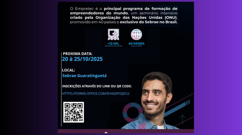 Vai começar o Empretec, um seminário desenvolvido pela ONU, exclusivo do Sebrae no Brasil e reconhecido como o maior do mundo na área de empreendedorismo.