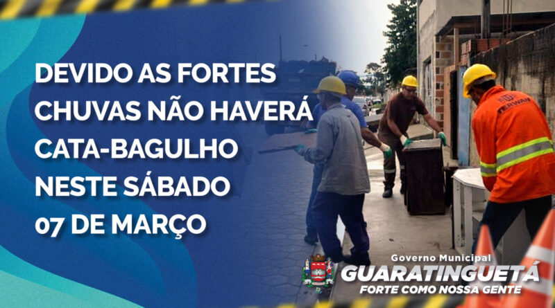 Ler maisA Prefeitura de Guaratinguetá informa que a operação Cata-Bagulho, que seria realizada neste sábado (07), foi cancelada devido às fortes