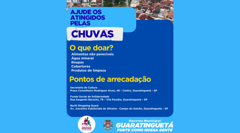 Ler maisA Prefeitura de Guaratinguetá, por meio da Secretaria Municipal de Saúde, informa que, em virtude das chuvas que atingiram a