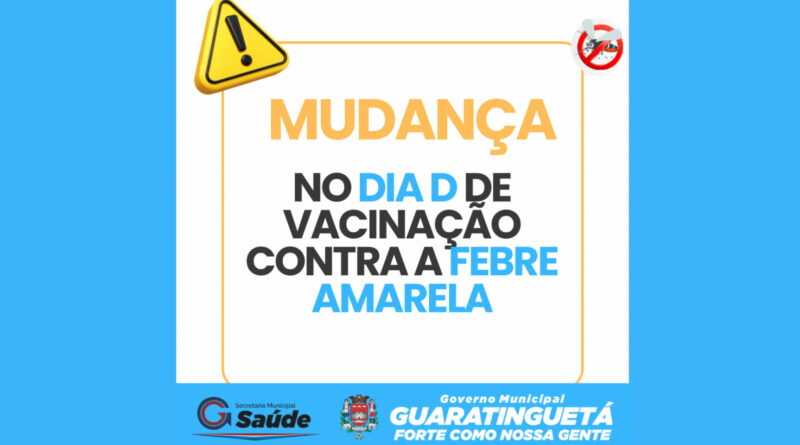 Ler maisA Prefeitura de Guaratinguetá, por meio da Secretaria Municipal de Saúde, informa que houve alteração nos locais do Dia D