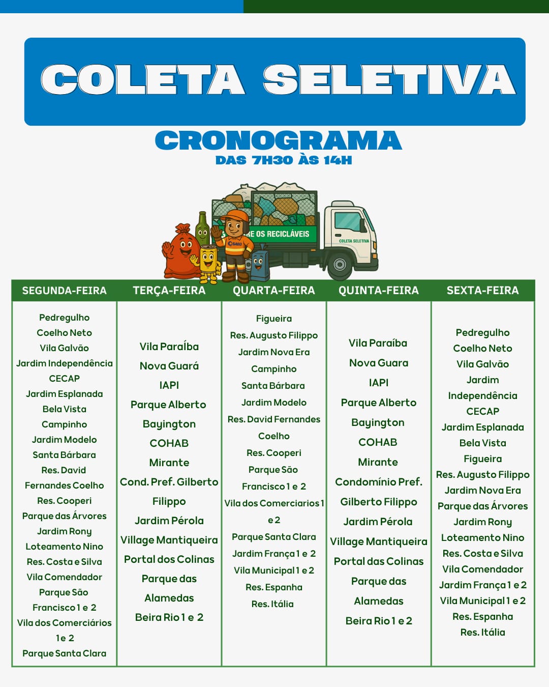A Operação Cata Bagulho atenderá o seguinte bairro neste sábado, (18)
