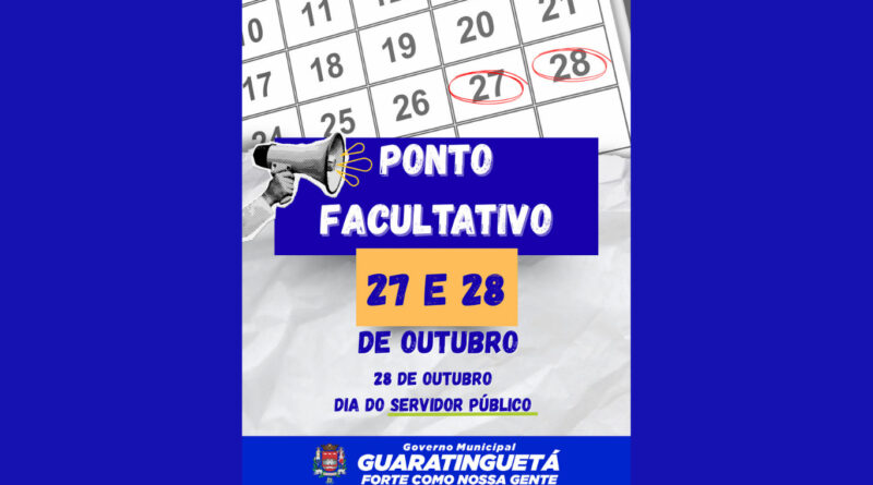 Nos dias 27 e 28 de outubro teremos ponto facultativo em Guaratinguetá, conforme o decreto nº 10.279.