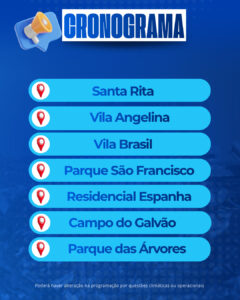 Confira o cronograma da Limpeza Urbana desta semana, com os locais que serão atendidos pelas equipes de 07 a 10 de Abril.