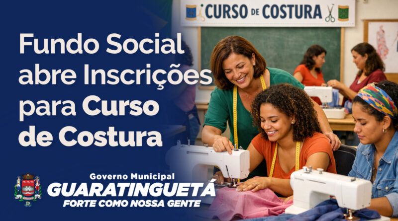 A Prefeitura Municipal, por meio do Fundo Social de Solidariedade de Guaratinguetá, abre a partir de segunda-feira, dia 02, as inscrições para Cursos de Costura, oferecendo mais uma oportunidade de qualificação para a população.