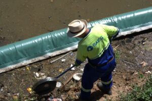 A retirada dos resíduos acontece todas as quartas-feiras, garantindo o monitoramento contínuo do Ribeirão dos Motas. Na última quarta-feira,14, foram retirados 40 quilos de resíduos flutuantes, reforçando a importância da manutenção regular do sistema.