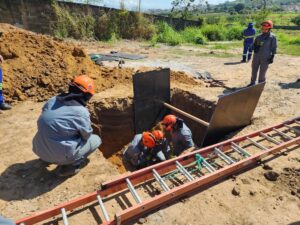 Para fechar com chave de ouro, teve simulação de salvamento em situação de soterramento e colocação de escoras, mostrando na prática a importância da prevenção e do trabalho em equipe.
