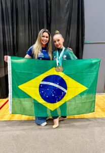 A atleta foi acompanhada pela treinadora Dayane Camillo, ex-ginasta da Seleção Brasileira e atual presidente da Federação Paranaense de Ginástica, que também atua como coreógrafa e técnica de Beatriz.