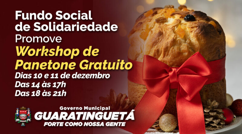 A Prefeitura de Guaratinguetá, por meio do Fundo Social de Solidariedade, promoverá nos dias 10 e 11 de dezembro um Workshop de Panetone totalmente gratuito para a população.