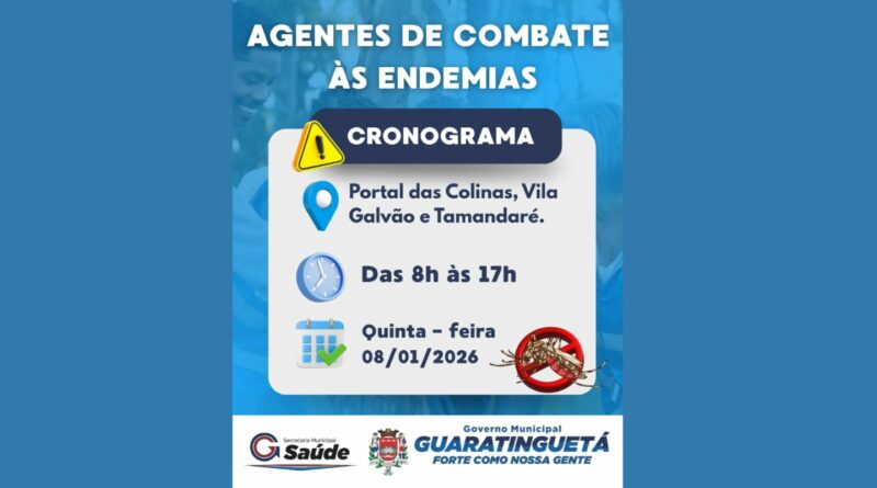 Prefeitura informa programação dos agentes de endemias nesta quinta-feira (08)